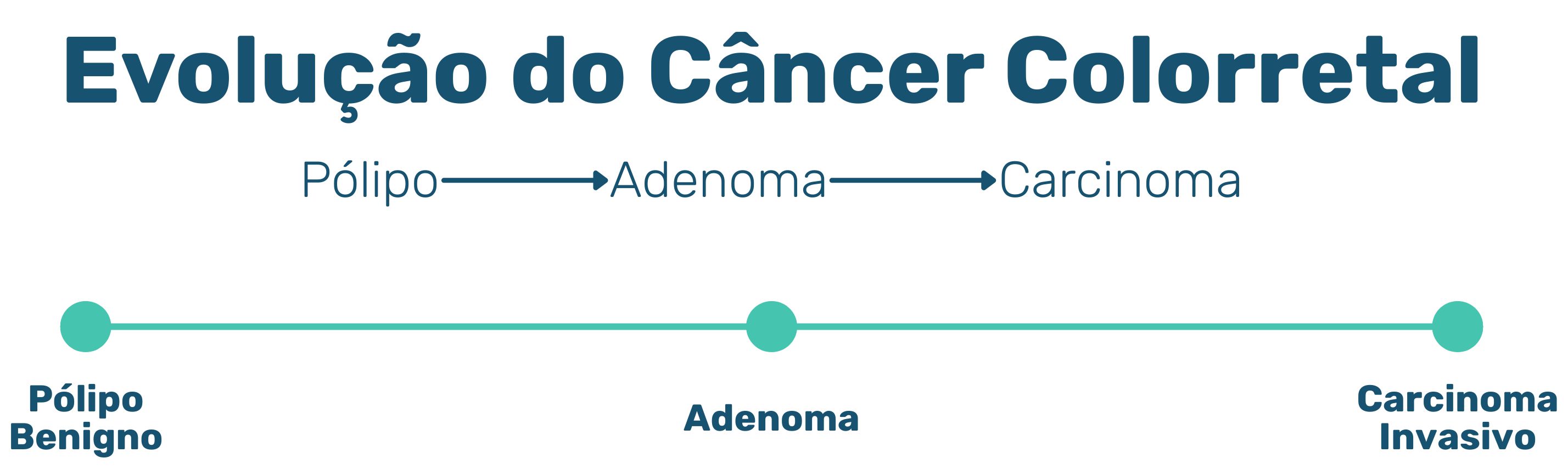 O CCR normalmente evolui a partir de pólipos adenomatosos, que podem ser removidos antes de se tornarem malignos.