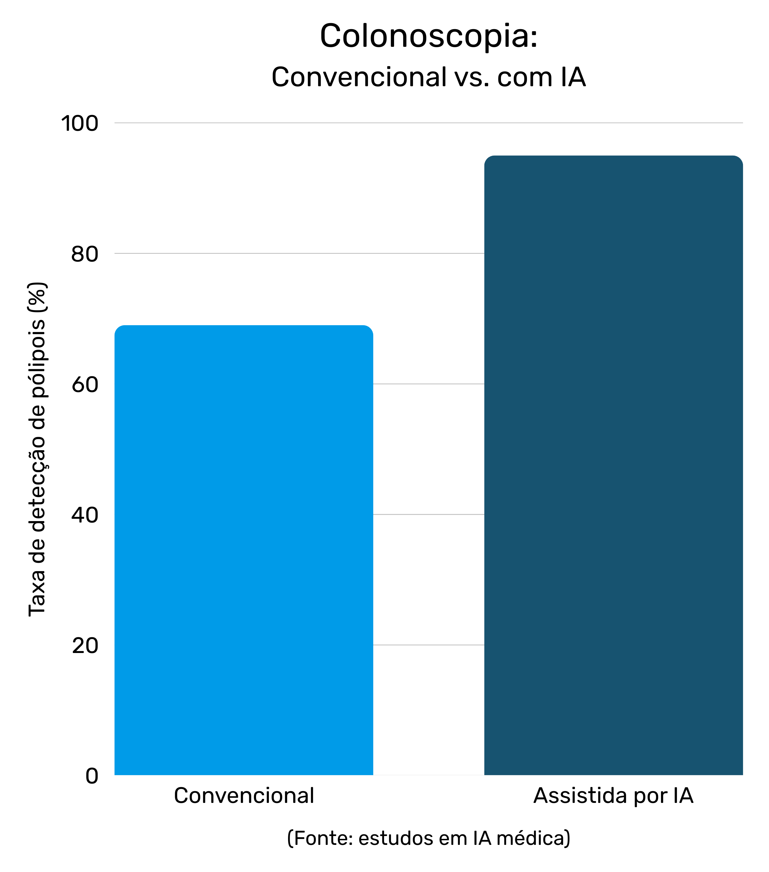 - Inteligência Artificial na Colonoscopia: modelos como o YOLOv5 auxiliam na detecção automática de pólipos, aumentando a taxa de diagnóstico em estágios iniciais.